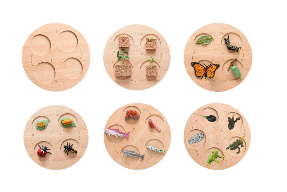 Деревянные пазлы, демонстрирующие этапы развития различных организмов. Развивают у детей понимание биологии, расширяют кругозор и тренируют моторику. Могут использоваться в детском саду, школе или дома.