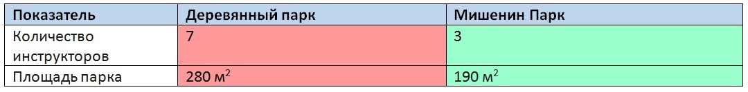 Краткий промежуточный итог: затраты на ФОТ (фонд оплаты труда) на парках с рельсовой страховкой в 2 с лишним раза ниже, и аренда площадей под парк тоже обойдется в среднем в 1.5 раза дешевле.