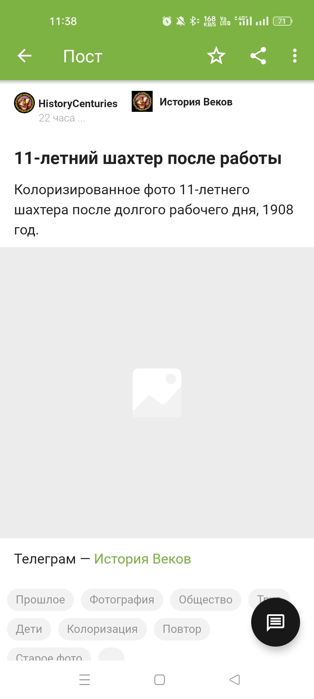 Колоризированное фото 11-летнего шахтера после долгого рабочего дня, 1908 год.