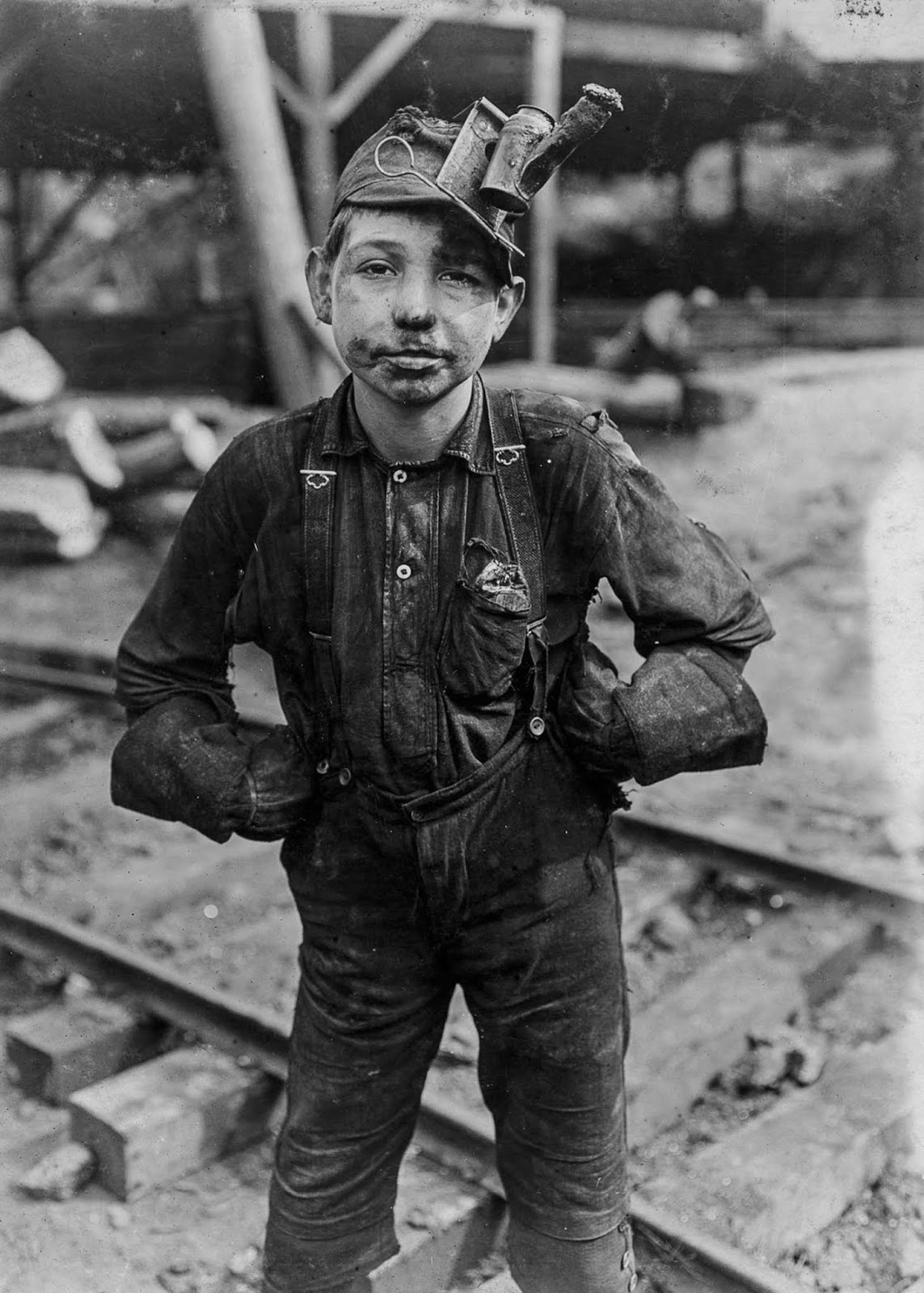 США, Западная Вирджиния. Колоризованная фотография Льюиса Хайна -- мастера документальной фотографии. Он начал первую в истории США кампанию против эксплуатации детей на производстве, в течение 10 лет ездил по своей стране и снимал, проникая под разными предлогами на предприятия. Данная фотография относится к его "Галерее потерянного поколения". В конце концов это привело к пересмотру закона "О детском труде" в США, а серия его фотографий была представлена на суде. Эксплуатация детского труда, к сожалению, достаточно массовое явление для большинства стран конца 19, начала 20 века.