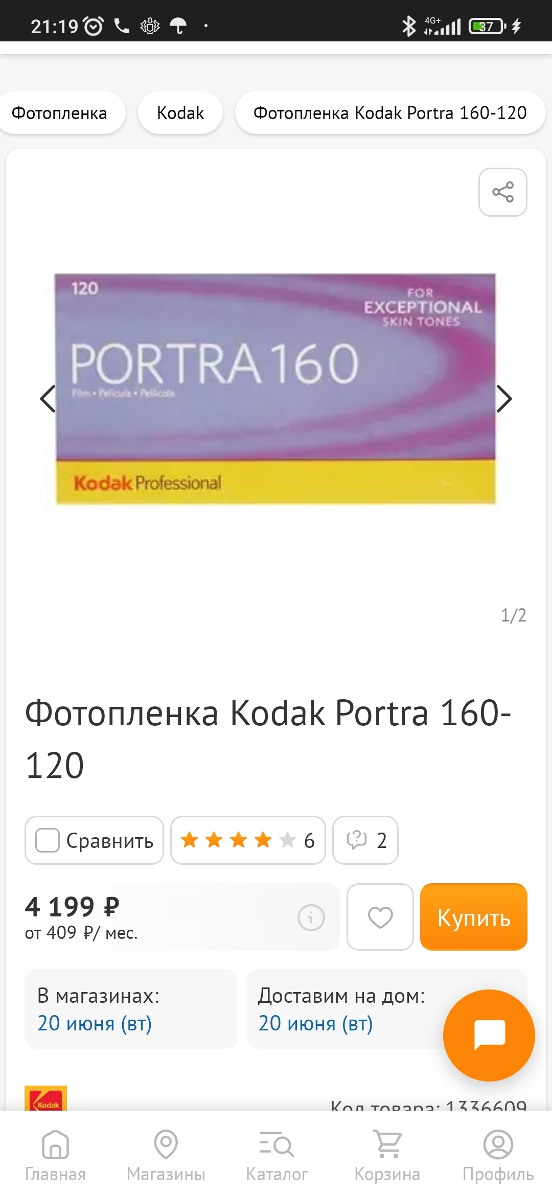 открываем сайт ДНС. Вводим Kodak portra 160. Пачка из 5 катушек 4200р.