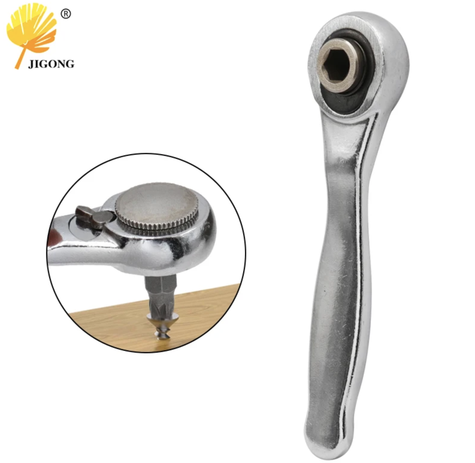 Мини гаечный ключ с трещоткой JIGONG удобен для работы с крепежом в узких местах, где обычным ключом невозможно сделать полный ход.