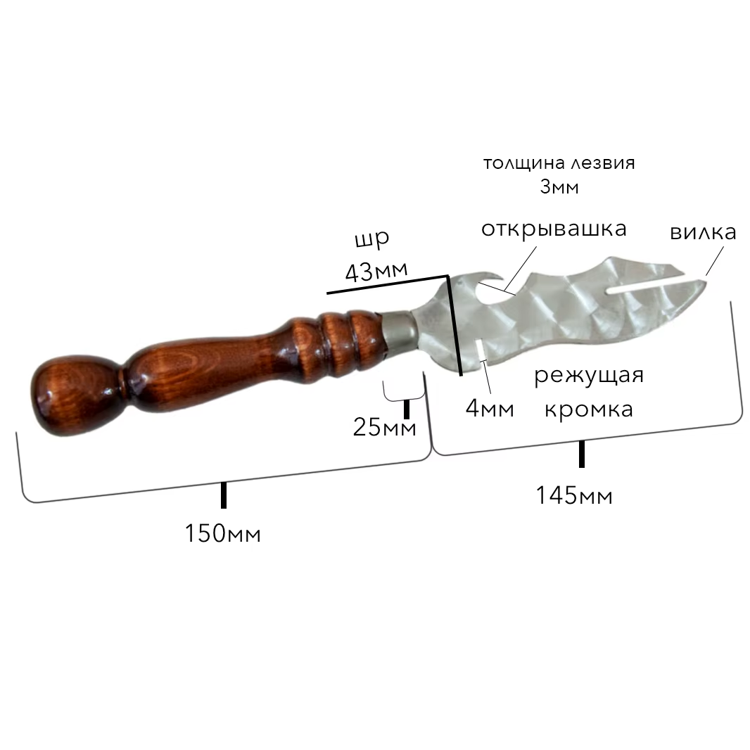 В комплект входит специальный нож-съемник с двухсторонним захватом, что значительно упрощает снятие готового мяса. Ручки защищены от огня металлическими кольцами и покрыты влагостойким лаком.