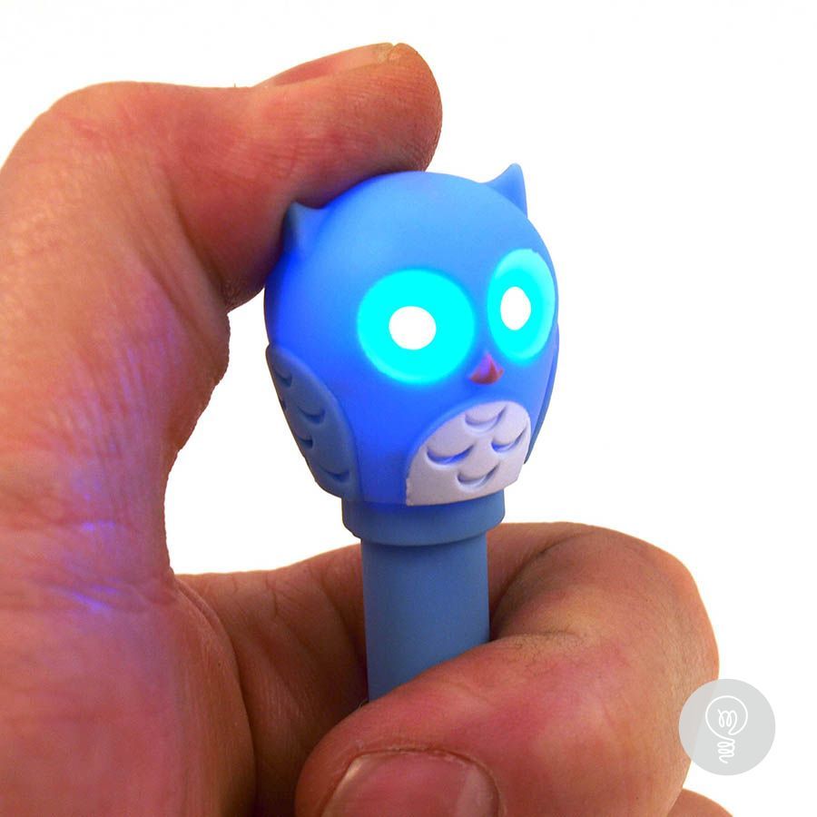 Очень забавная и смешная ручка в виде совы. Стержень с черными чернилами появляется при повороте ручки в середине корпуса, а самая сильная магия проявляется при нажатии на голову совы - ручка начинает ухать как сова и моргать светодиодом!