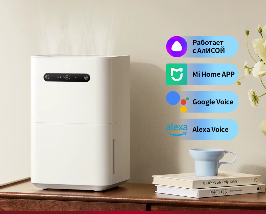 В устройстве используется система испарения без образования пара и конденсата. Регулировка мощности позволяет выбрать подходящий режим работы, а поддержка голосовых помощников делает управление удобным.