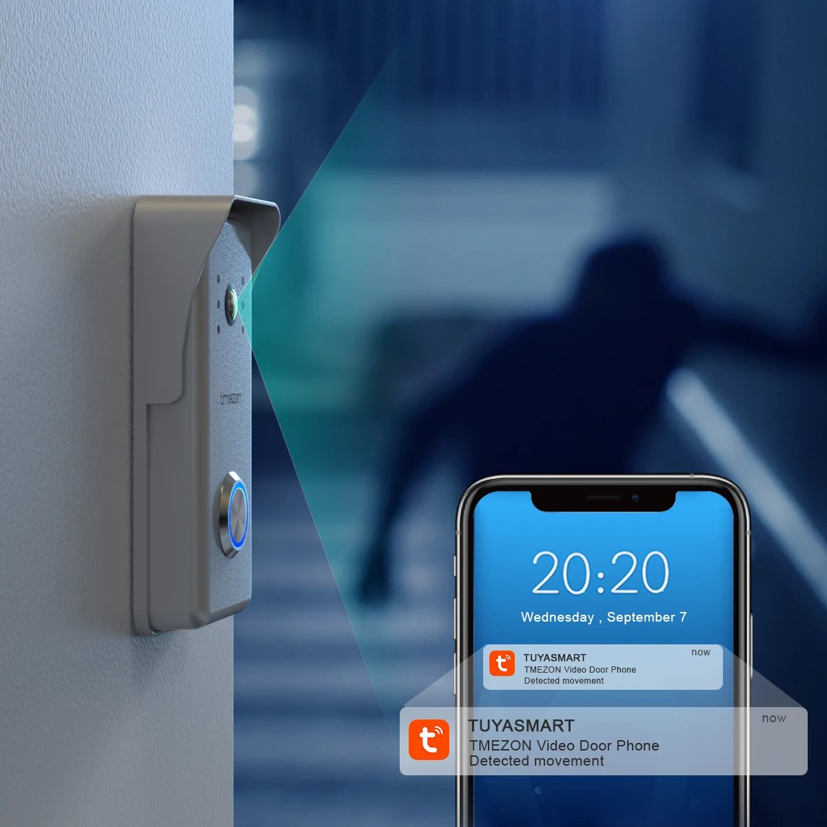 Управляется через мобильное приложение, что позволяет следить за посетителями и даже открывать дверь дистанционно.