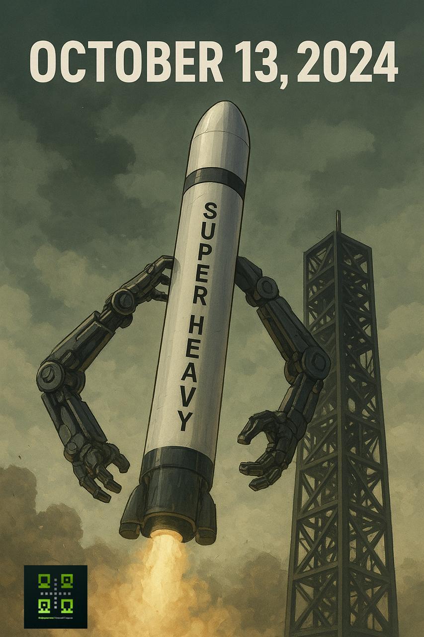 🚀 В этот день компания SpaceX достигла исторического рубежа: Super Heavy, первая ступень ракеты Starship, впервые была успешно поймана гигантскими механическими «руками» у стартовой башни.