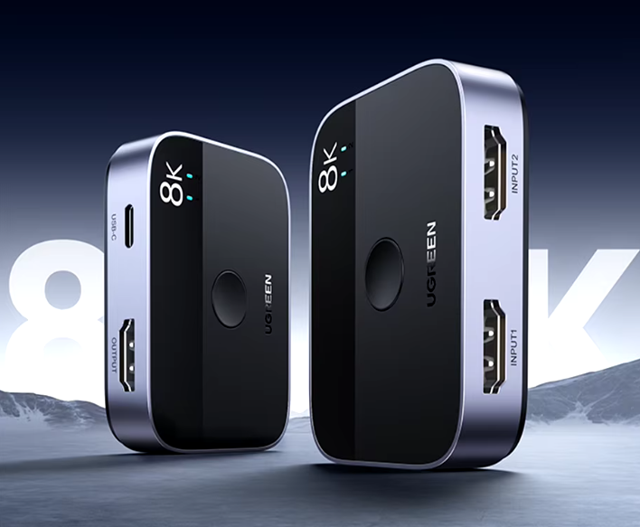 Компактный HDMI 2.1 разветвитель от UGREEN. Поддерживает разрешение до 8K@60Hz и 4K@120Hz, подходит для Nintendo Switch, PS5 и Xbox Series X. Легкое переключение между устройствами обеспечит комфортное использование.
