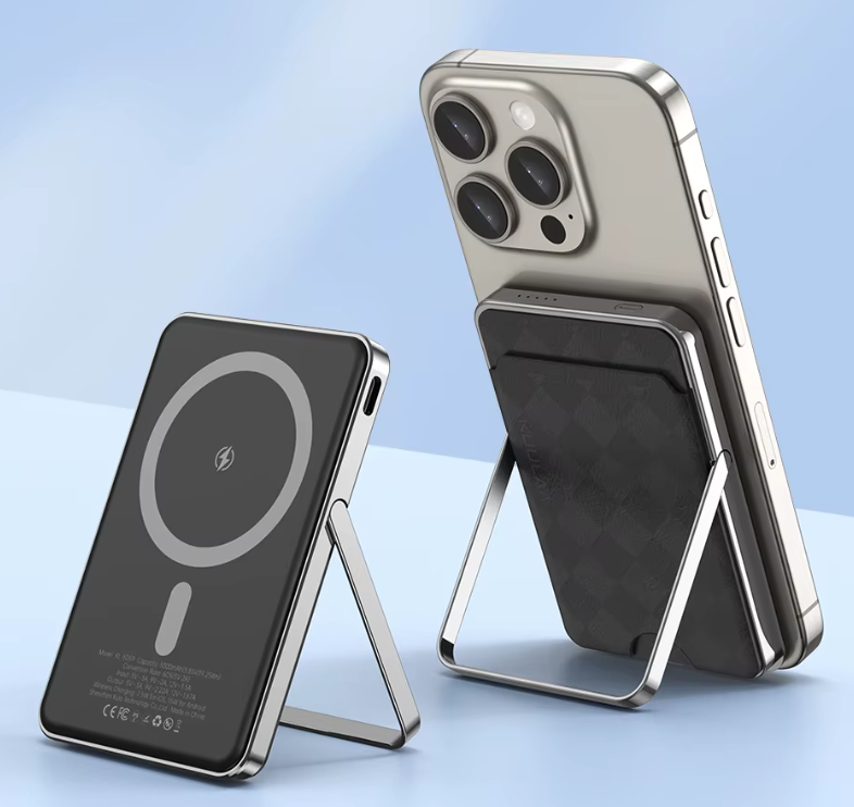 Универсальный power bank для быстрой и беспроводной зарядки. Тонкий, лёгкий и стильный, выполняет функцию подставки для телефона. Встроенные кармашки для пластиковых карт добавляют удобства. В комплекте зарядный кабель.