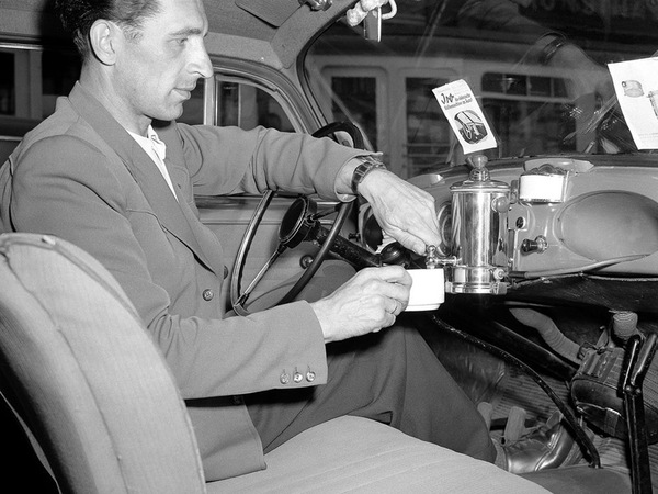 Попытки создать автомобильную кофеварку предпринимались с тех пор, как по дорогам поехал первый автомобиль и предпринимаются до сегодняшнего дня. Взбодриться в дороге предлагали и в 1950-е, кроме того, существовали специальные приборы для варки яиц и даже бритья.