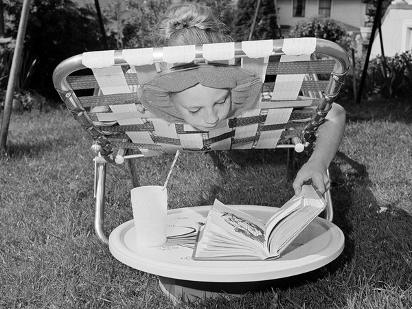 Пожалуй, скорее полезное, чем безумное изобретение пользовалось довольно стабильным спросом в свое время и позволяло загорать, не отрываясь от любимой книжки.