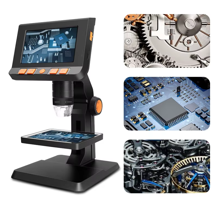 Оснащён 4,3-дюймовым дисплеем для комфортного наблюдения мелких деталей без подключения к компьютеру. Можно достичь увеличения до 1000 крат и детально рассмотреть особенности электроники, монет, насекомых или ювелирных изделий. Микроскоп имеет встроенную подсветку и регулируемую подставку, что особенно полезно при пайке микросхем или других точных работах. Компактные габариты позволяют брать его с собой даже на выездные проекты.