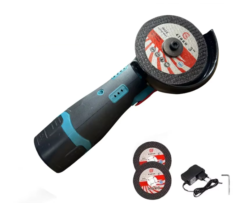 Углошлифовальная машинка с питанием от литий-ионных батарей (в комплекте могут идти одна или две). Диаметр диска обычно составляет 76 мм, а скорость вращения достигает 19500 об/мин. Инструмент оснащён блокировкой от случайного запуска и защитным кожухом. Позволяет резать, шлифовать и полировать металл, пластик и другие материалы там, где нет доступа к стационарной сети.
