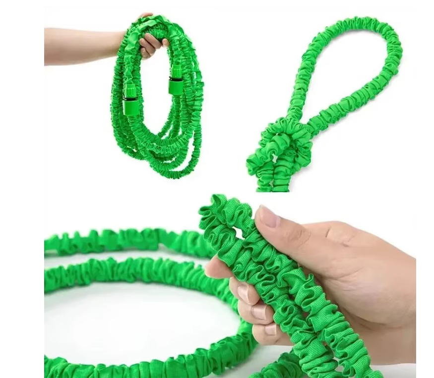 При подаче воды автоматически увеличивается в длину примерно в пять раз от своего изначального размера. Снабжён универсальной насадкой для подключения к садовому крану. Лёгкий вес и компактность в свернутом виде упрощают хранение, а прочный внешний слой защищает от проколов и повреждений. Идеален для полива участка, мытья машины или ухода за газоном.