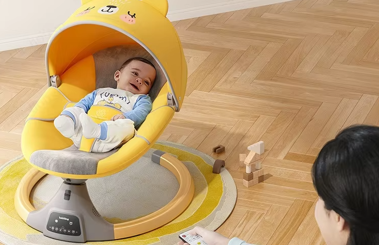 Комфортное кресло-качалка с функцией автоматического укачивания. Работает от аккумулятора, имеет несколько режимов покачивания. Встроенные мелодии и игрушки помогают успокоить малыша.