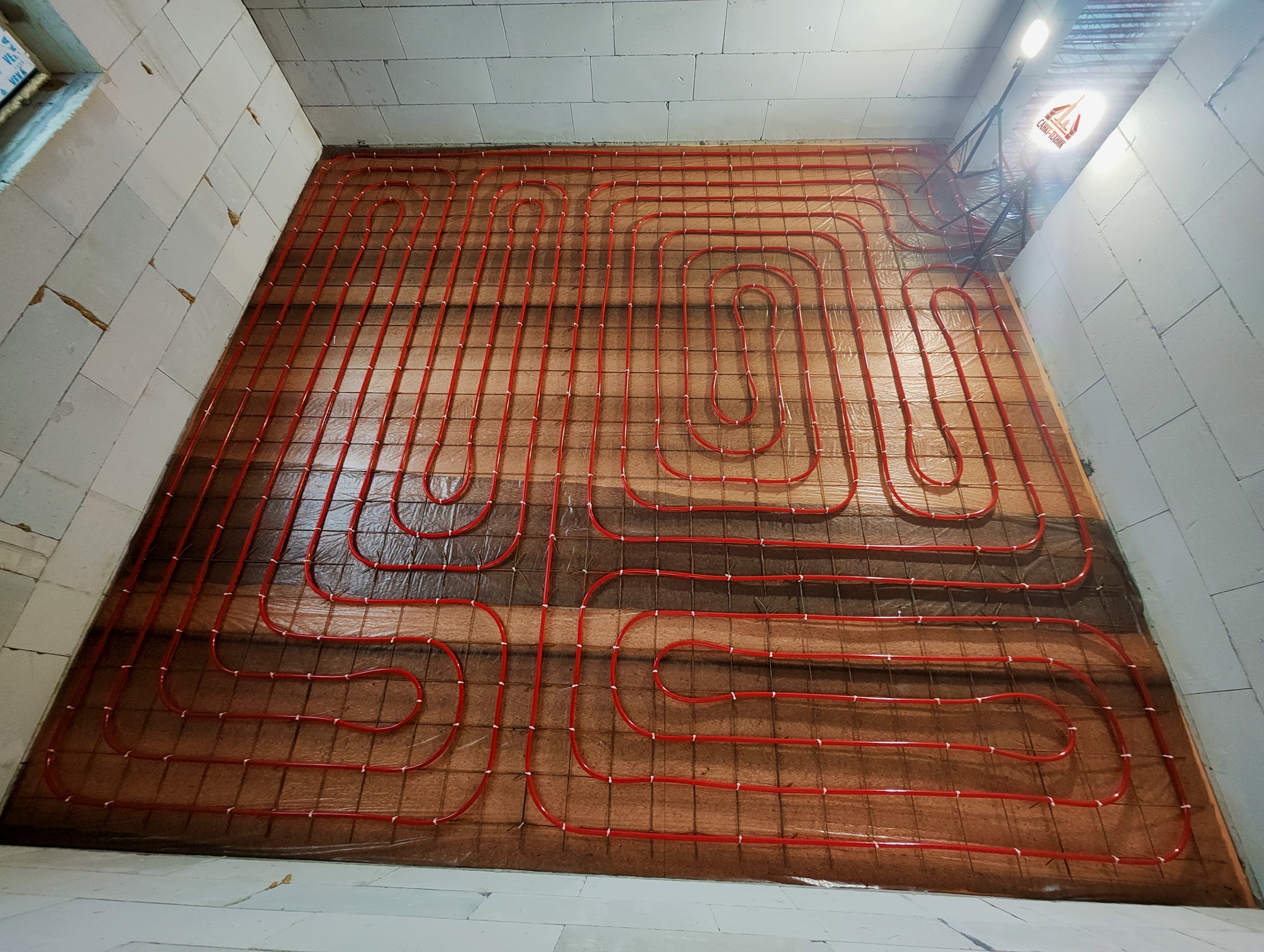 Тут мы опять же имеем теплые полы, как основную и единственную систему отопления во всех помещениях на обоих этажах дома. Заказчик сам изначально поставил такую задачу, утвердив абсолютно во всех помещениях плитку в виде напольного покрытия. Это он и получил в итоге.