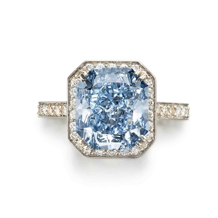 1. Кольцо с фантазийным насыщенным голубым бриллиантом весом 6,11 карат.