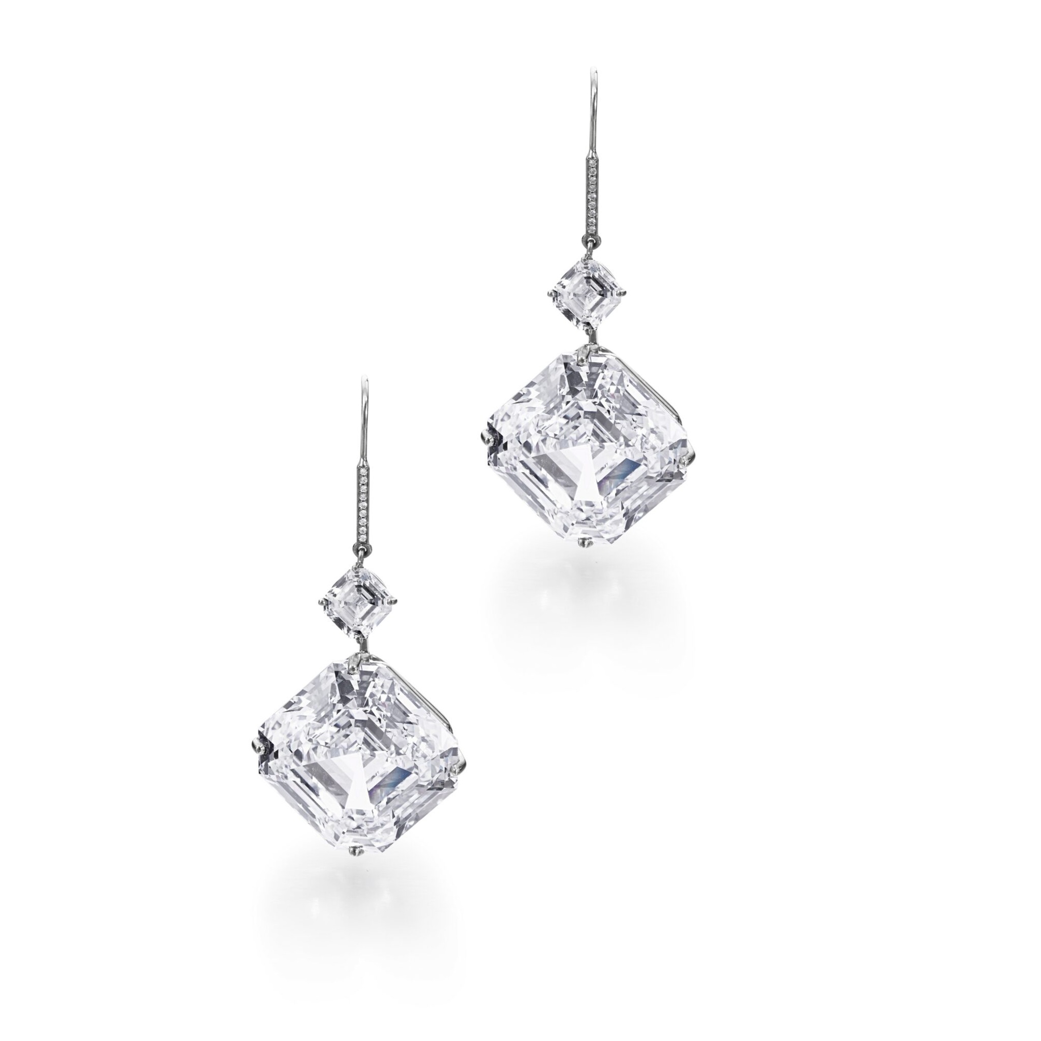 12. Пара идеально подобранных бриллиантов цвета D безупречной квадратной огранки весом 25,88 карат.