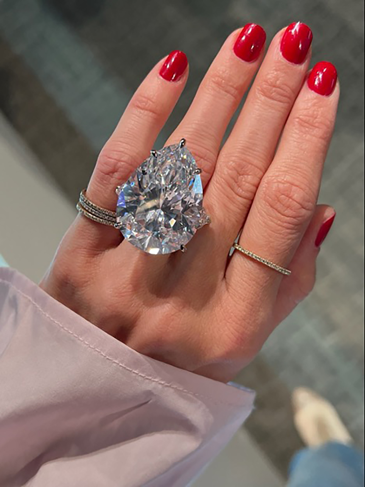 4. Кольцо с безупречным грушевидным бриллиантом цвета D весом 101,38 карат.