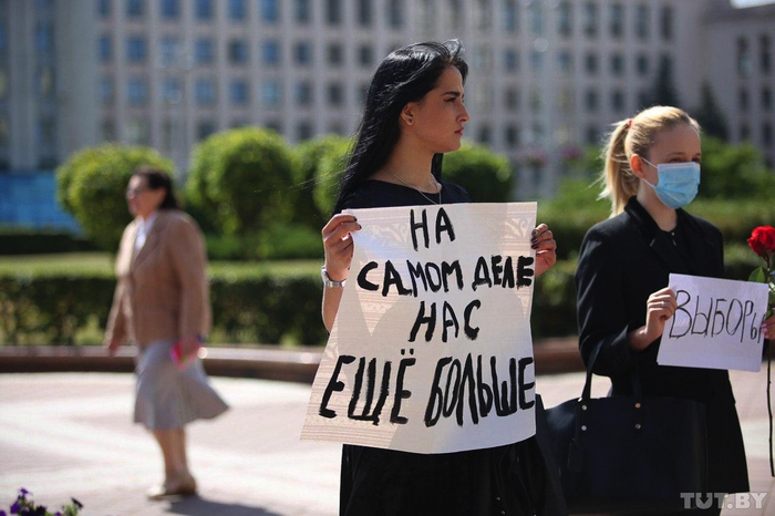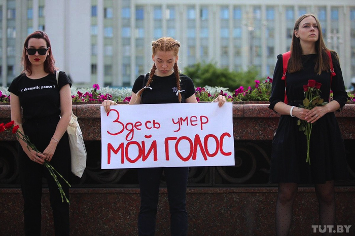 Женщины пришли с плакатами "Здесь умер мой голос" и "На самом деле нас еще больше".