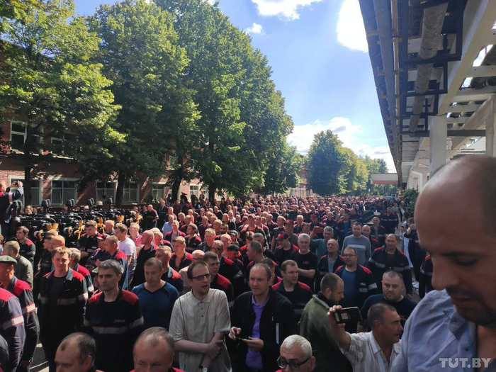 На МАЗ по-прежнему не пускают прессу, хотя люди настоятельно этого требуют. Как рассказал один из сотрудников, генеральный директор предприятия пообещал помочь урегулировать вопрос и освободить по возможности задержанных сотрудников МАЗа и их родственников. Но людей это возмутило — их требования распространяются гораздо шире собственного интереса.