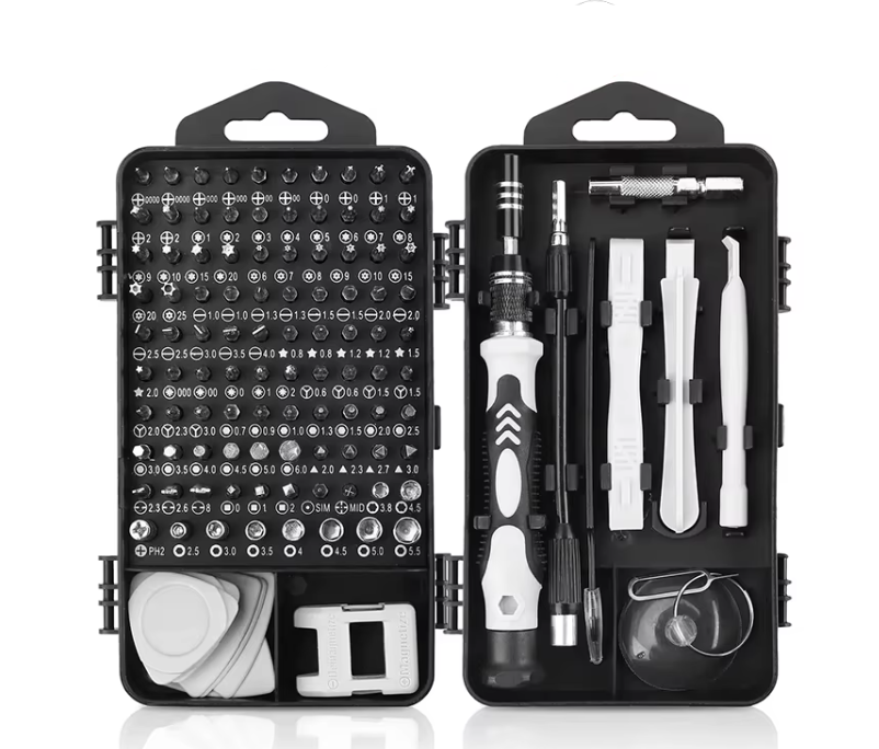 Набор включает 117 насадок для ремонта электроники и техники. Подходит для телефонов, iPhone, компьютеров и мелкой электроники. Магнитные биты упрощают работу с мелкими винтами.