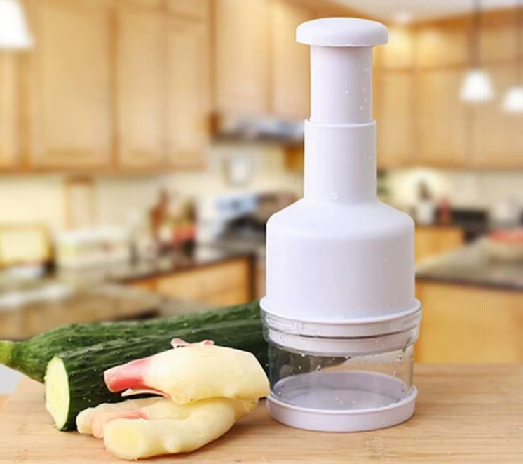 Ручной измельчитель предназначен для быстрой нарезки овощей, зелени и орехов. Работает без электричества, что удобно для кухни и дачи. Простая конструкция легко разбирается и моется.