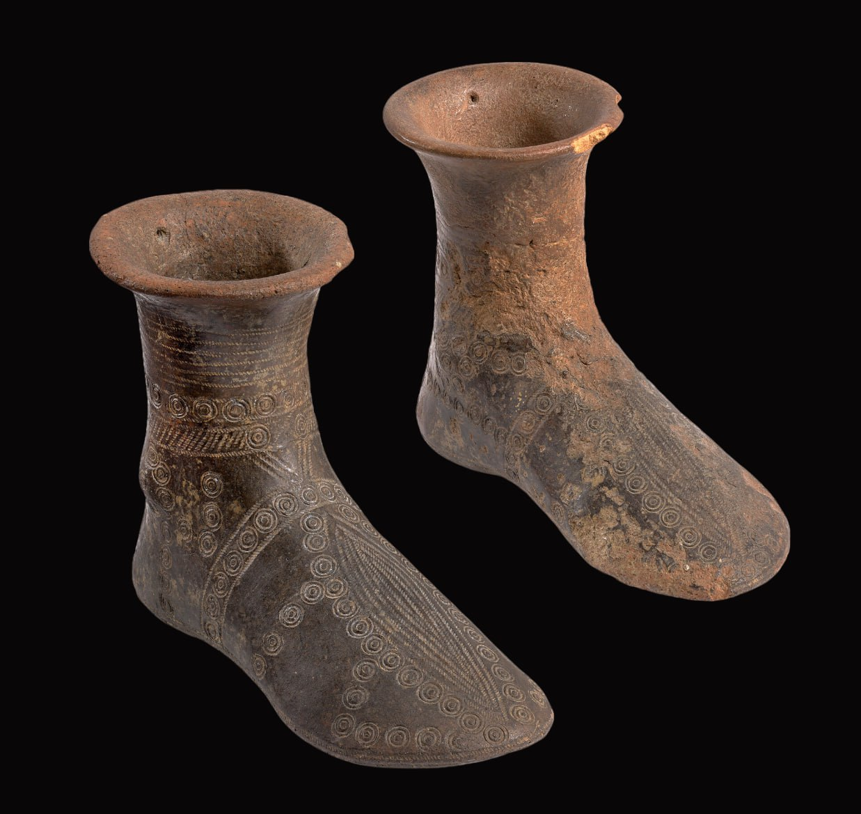Две этрусские чаши в виде обуви.