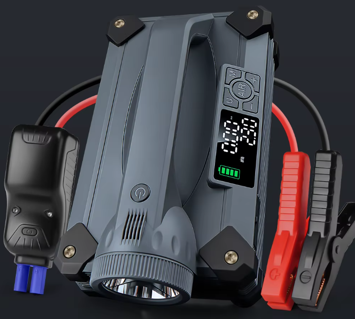 Компрессор, встроенный в корпус, превращает стартер в универсальный инструмент для дорожных ситуаций. Давление подаётся стабильно, поэтому можно накачать автомобильные колёса, мотоциклы, детские коляски, бассейны или туристические матрасы. Фонарик мощностью 15 Вт облегчает работу ночью, а режим аварийной сигнализации делает устройство полезным в экстремальных условиях.