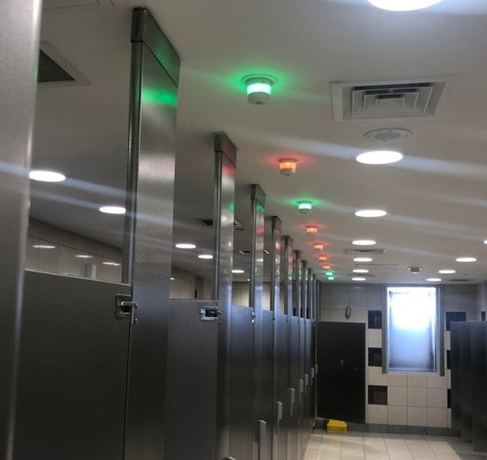 10. Над каждой кабинкой есть подсветка, которая показывает, занята она или свободна
