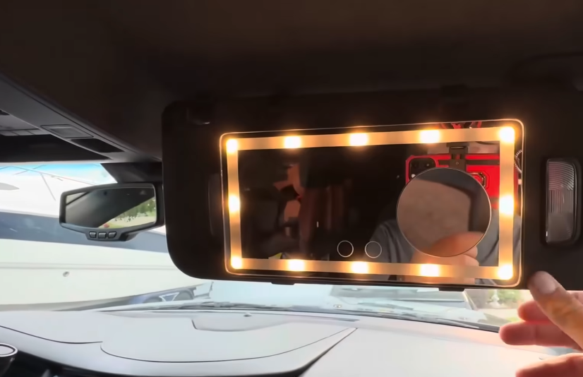 Компактное зеркало с подсветкой превращает стандартный салонный козырёк в полноценное место для ухода за внешностью. Устройство крепится с помощью липучек и не требует инструментов. Сенсорная кнопка активирует светодиодную подсветку, а удержание пальца позволяет плавно регулировать яркость под разные условия — от мягкого утреннего света до яркого вечернего.
