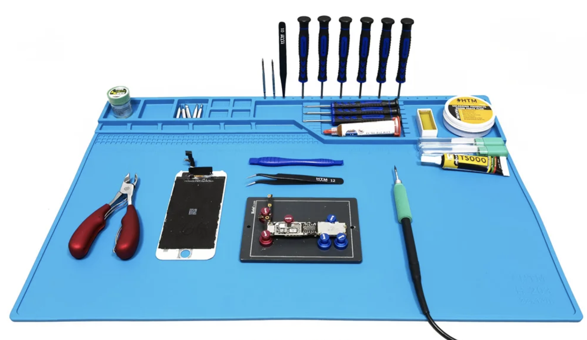 Электростатический сварочный мат с магнитной теплоизоляцией и силиконовой основой предназначен для пайки, ремонта электроники и работы с мелкими компонентами. Антистатические свойства помогают снизить риск повреждения чувствительных плат, а термостойкая поверхность выдерживает горячий инструмент. Магнитные зоны удерживают винты и мелкие детали, упрощая разборку смартфонов и сборку устройств.