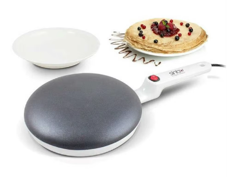 Погружная блинница 5208 позволяет готовить тонкие блины без прокрутки теста по сковороде. Рабочая поверхность равномерно нагревается, после чего достаточно окунуть её в миску — тесто распределяется тонким слоем и схватывается моментально.