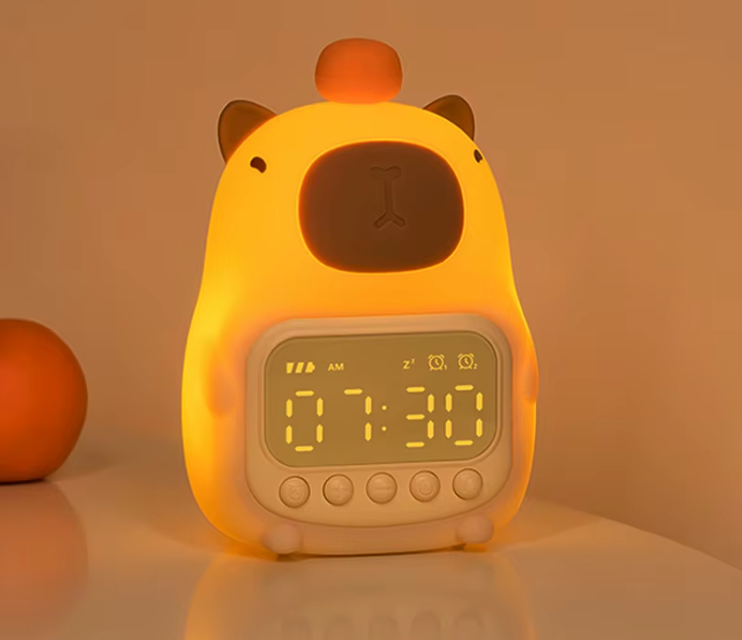 Ночник Lessdot выполнен в виде милой капибары, создавая тёплую атмосферу в спальне или детской комнате. Подсветка мягкая, не раздражает глаза, а выбор оттенков помогает создать комфортный фон для сна.