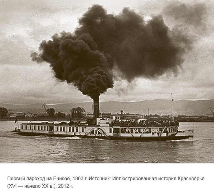 1863 год считается началом местного судоходства, хотя ходили по Енисею, конечно же, и ранее. Как по Северу, так и по Югу. Водные пути были основными при освоении Сибири. Сам Енисей протяженностью в три тысячи километров с Юга на Север связывал отдаленные районы от нынешней Тывы до Таймыра. Ангара прокладывала путь на Восток до Байкала. А еще были перешейки, где протаскивали лодки волоком. Так из Енисея попадали на Обь - главную транспортную артерию Западной Сибири. Или тащили на р.Таз в Мангазею и выходили на Обскую губу.
