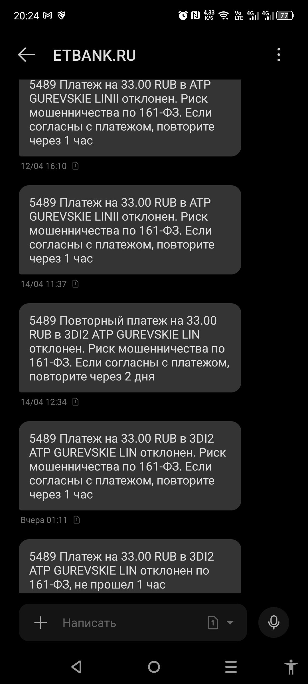 - вечером на всякий случай проверяю карту и вижу что оплата проезда не произведена по 161-ФЗ