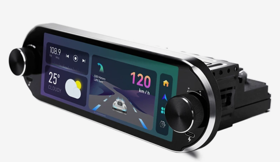 Корпус оснащён боковыми регуляторами, которые удобны в движении, когда не хочется отвлекаться на сенсор. Звук остаётся чистым даже на высокой громкости, а подключение по Bluetooth позволяет принимать звонки и слушать музыку без проводов. Модуль Wi-Fi добавляет гибкости — обновления, загрузка карт и быстрый доступ к сети становятся доступнее.