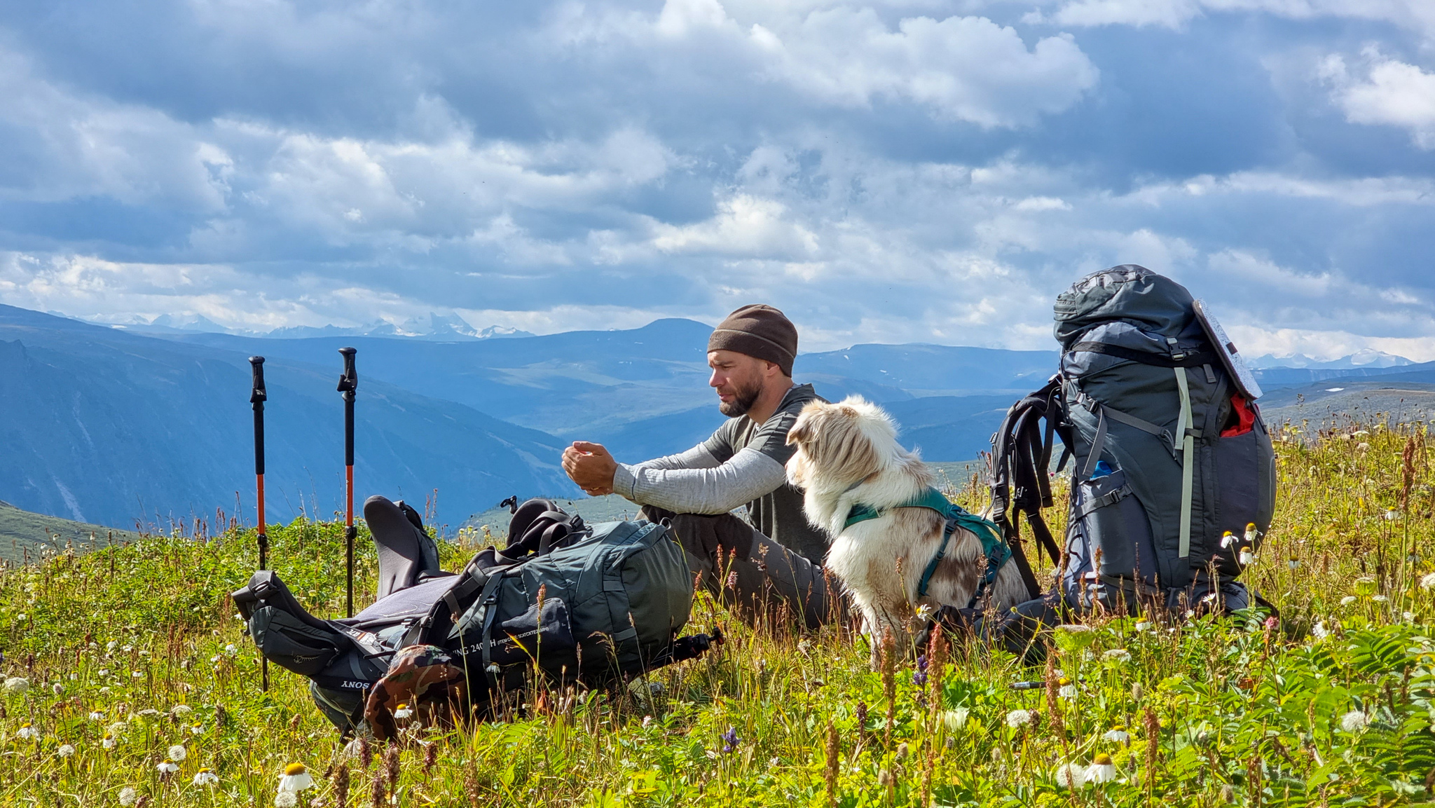 Если подробнее, то маршрут подходит для знакомства собаки с пешими походами и отвечает нашим ключевым потребностям: технически доступный для двух человек, относительно безлюдный, ну и отдушина для одного рыбака и трёх любителей вкусно поесть - хариус.