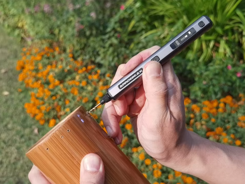 Компактная дрель с одной кнопкой управления и ЖК-дисплеем для выбора режимов. Четыре светодиода освещают рабочую зону, а специальный станок позволяет точно сверлить детали. Линейная разметка и пружинный механизм делают работу более точной. В комплекте — 10 сверл.