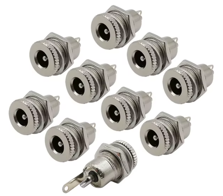 Прочные разъёмы с гайкой, подходящие для подключения питания 5,5×2,1 мм. Используются в самодельных проектах, ремонте блоков питания, светильников и другого оборудования.