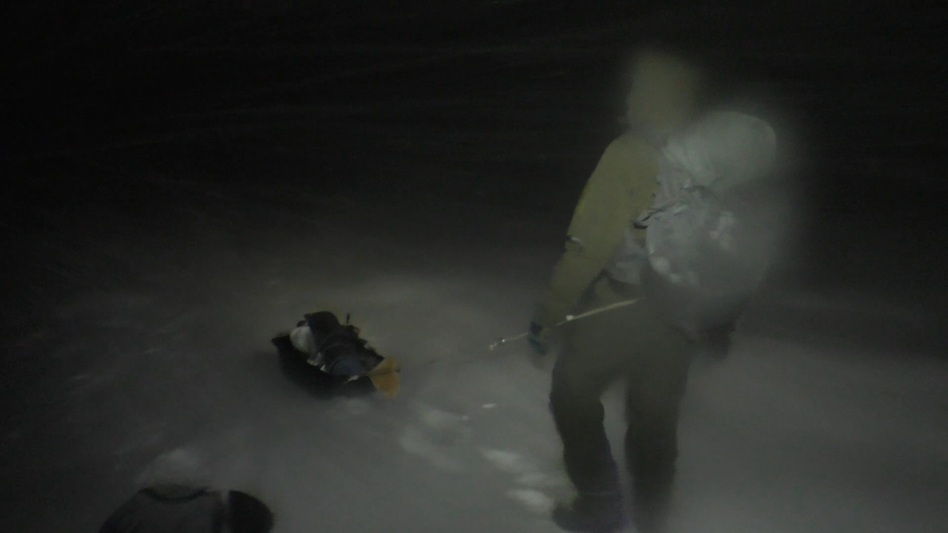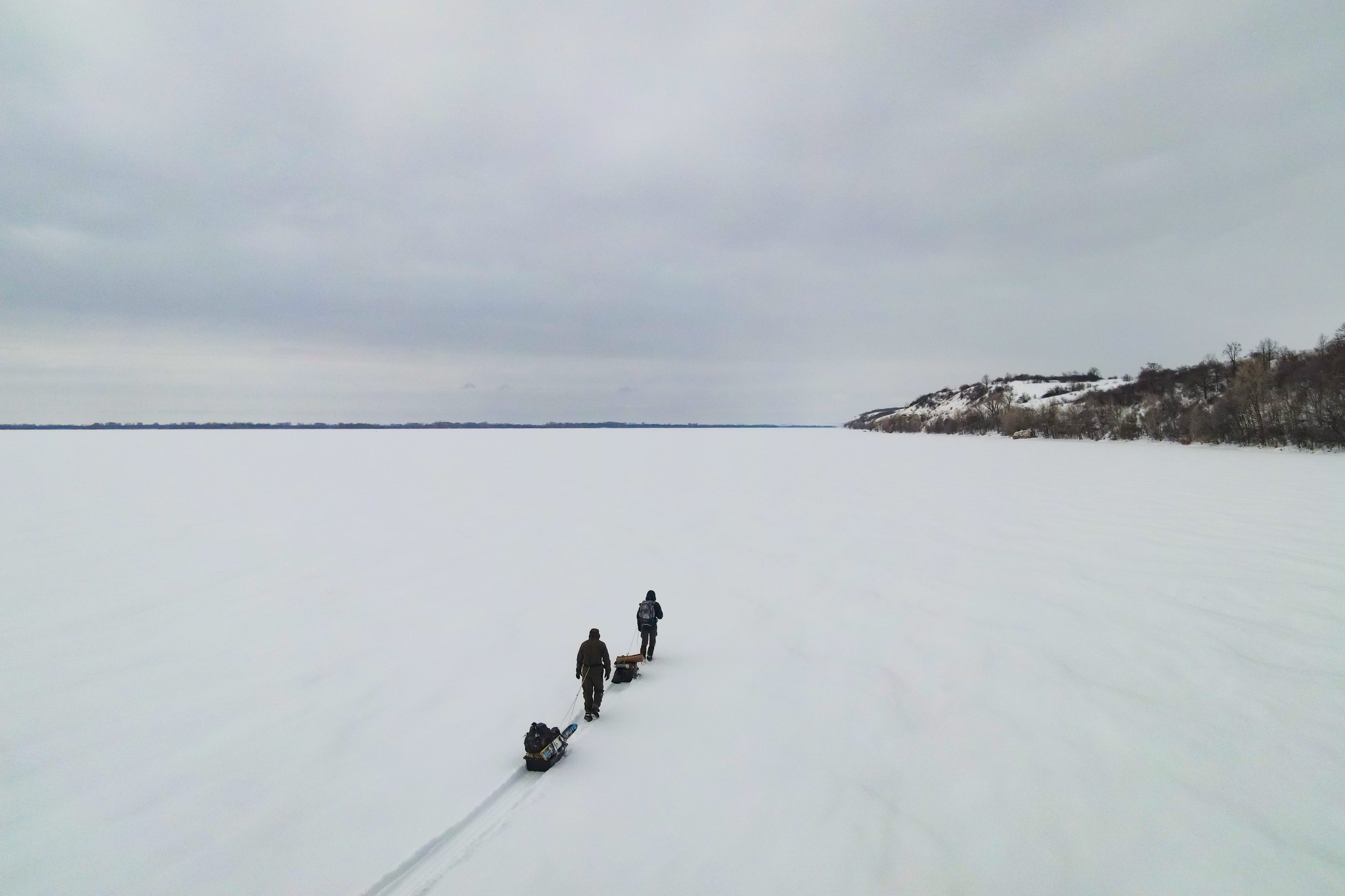 За ночь погода сильно изменилась. Температура поднялась до -15, но пришли снегопады и ветра. На волжский лед намело небольшой слой снега, который сильно усложнил ход волокушам, да и видимость местами была практически нулевая.