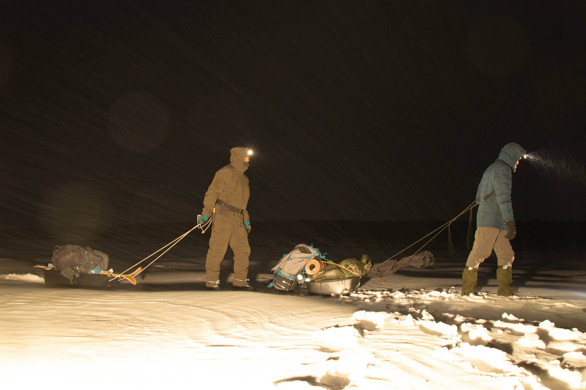 Особенностью нашего похода стала абсолютно разнообразная погода. Не было никакой стабильности. Аномальный мороз, сильнейший ветер, вьюга, оттепель. Поверхности, по которым мы шли тоже были самые разнообразные: тонкий слой снега, лед, мокрый снег, сугробы, снежные перемёты, бурелом и горы. Все это мы испытали на себе в кругосветке, но легко научились преодолевать.