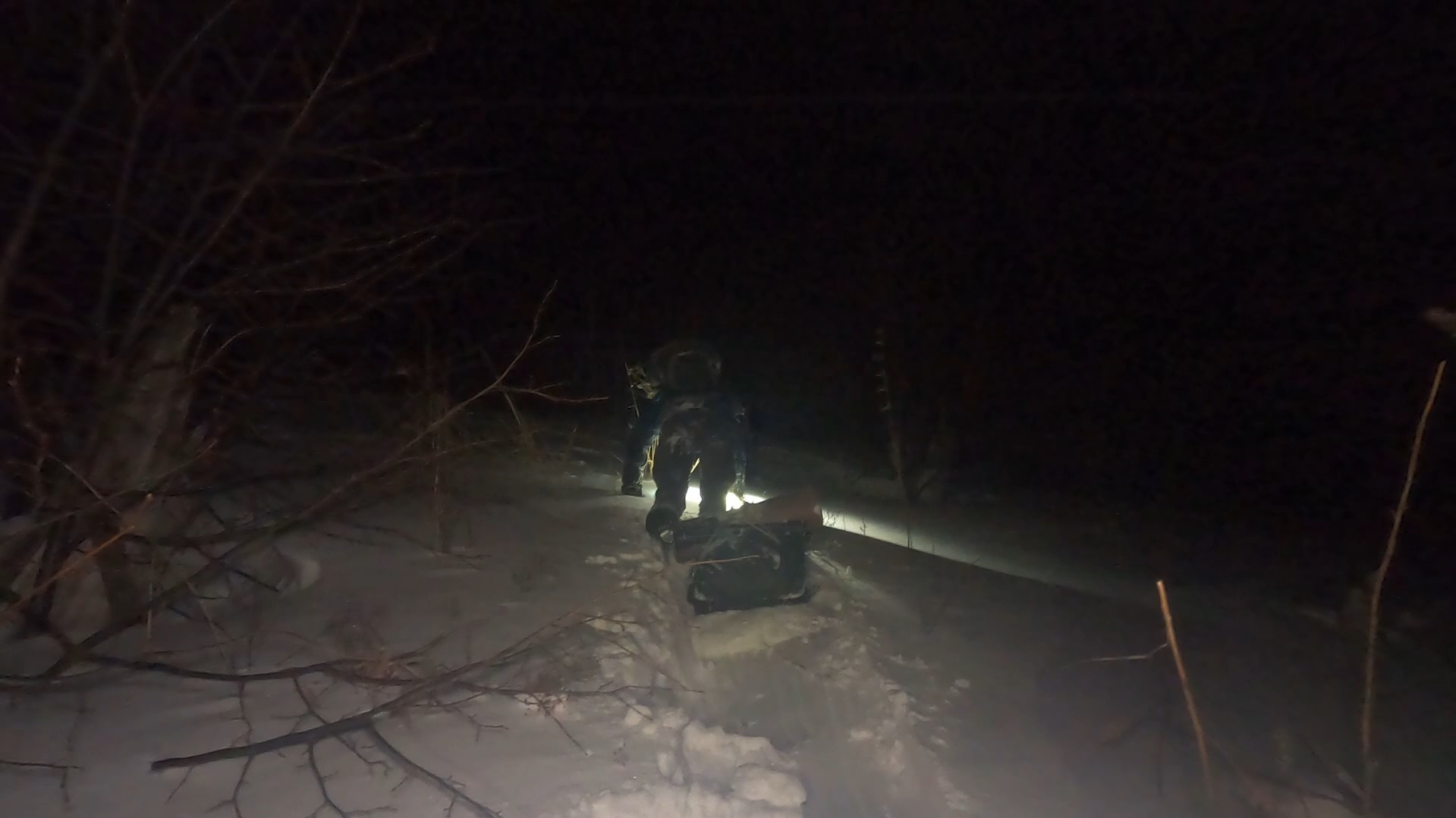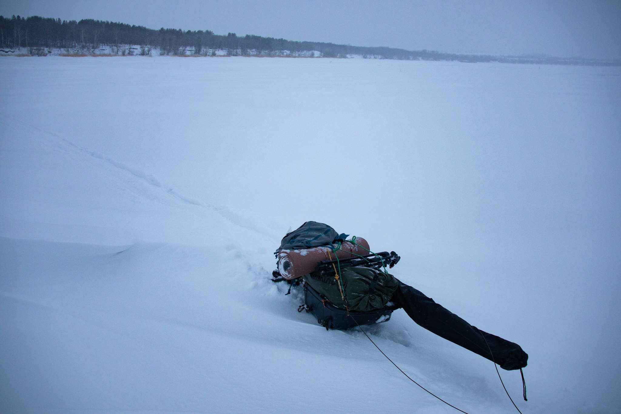Думаете жесть закончилась? Ха-ха, предстоял ещё подъем. Мне кажется, я исчерпал лимит матных слов, протаскивая по рыхлому снегу в гору через бурелом волокуши. Но мы дошли.