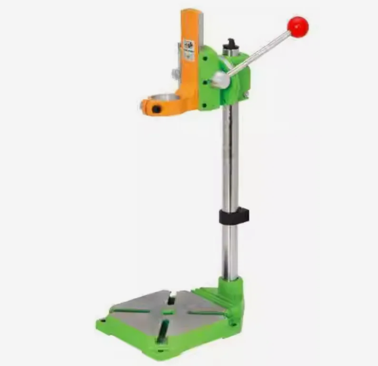 Механизм подачи плавный и позволяет регулировать глубину отверстия с высокой точностью. Такая установка особенно удобна для точных работ — сверления печатных плат, металлических деталей или древесины. Благодаря универсальному креплению держатель совместим с большинством бытовых и полупромышленных моделей дрелей.