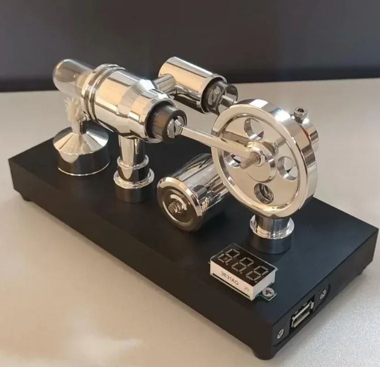 Наблюдение за процессом запуска вызывает неподдельный интерес. Достаточно поместить источник тепла под платформу, и маховик плавно начнёт вращаться. Модель демонстрирует физические принципы термодинамики, а также может стать оригинальным украшением рабочего стола или коллекционным экспонатом. Точная сборка, аккуратная обработка деталей и прозрачные стенки цилиндров позволяют видеть каждый элемент в действии.
