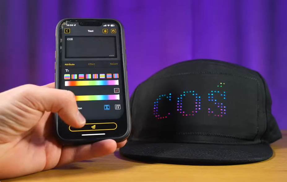 Эта кепка объединяет в себе уличный стиль и высокие технологии благодаря встроенному программируемому пиксельному экрану. Управление через Bluetooth-приложение позволяет отображать на экране любые анимации, тексты и узоры, делая образ ярким и запоминающимся.
