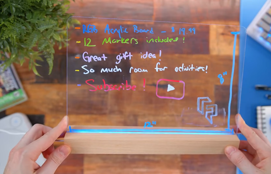 Встроенные светодиоды мягко подсвечивают записи, превращая доску в атмосферный ночник или декоративный элемент. Деревянная подставка добавляет элегантности и делает конструкцию устойчивой. Такой аксессуар подойдёт для офиса, кафе или детской комнаты, помогая структурировать повседневные задачи или творческие проекты.