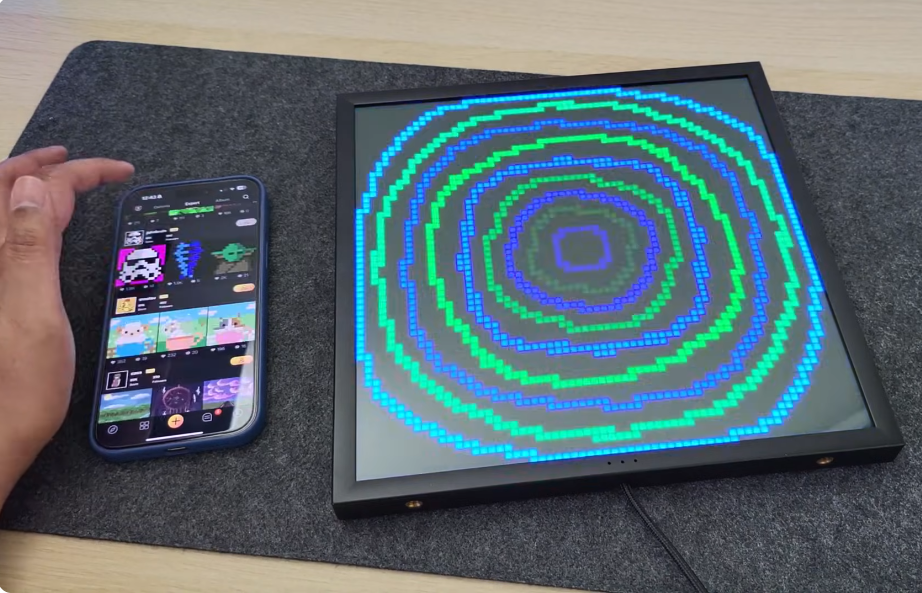 Этот гаджет создаёт креативное настроение на вашем рабочем месте. Цифровая рамка с пиксельным экраном 64x64 отображает анимации, погоду, время и даже игровую статистику, синхронизируясь с приложениями через Wi-Fi или Bluetooth.