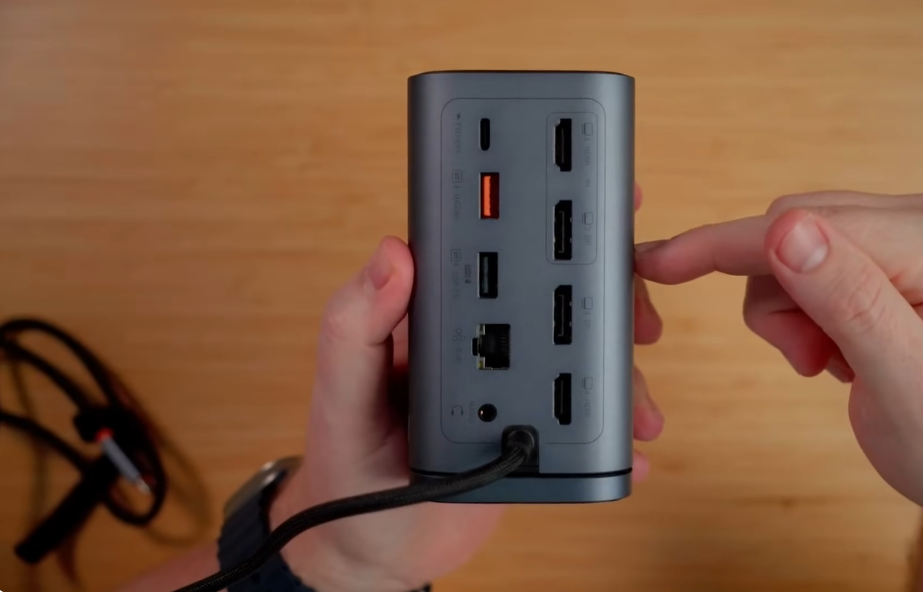 Устройство поддерживает подключение до трёх 4К мониторов через HDMI благодаря технологии DisplayLink, что делает его универсальным для MacOS и Windows.
