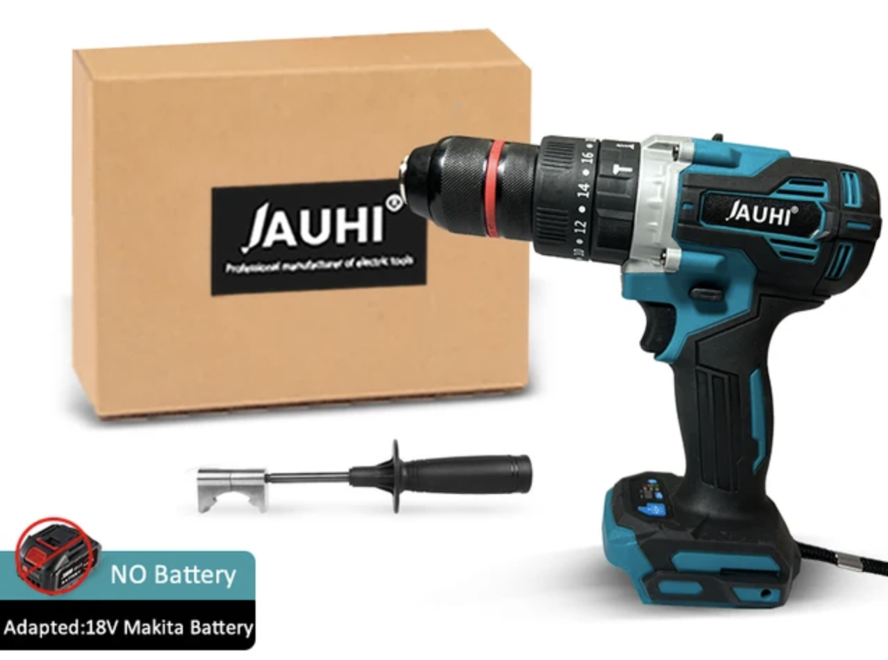Беспроводная ударная дрель JAUHI 650 Нм для аккумулятора Makita подходит для крепежа и сверления, когда нужна мобильность и хороший запас по усилию. Совместимость с аккумуляторами Makita удобна тем, у кого уже есть батареи и зарядка от другой техники, поэтому можно собрать единый парк инструмента.